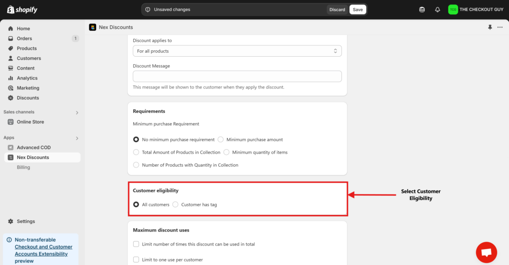 If you haven’t installed the Nex Discount Cap & Limit app yet, download it from the Shopify App Store. it is one of the best Shopify discount app in app store.