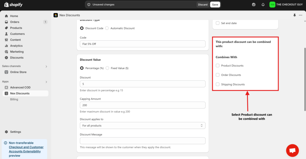 - Open the Nex Discount Cap & Limit (shopify discount app) in your Shopify Admin.